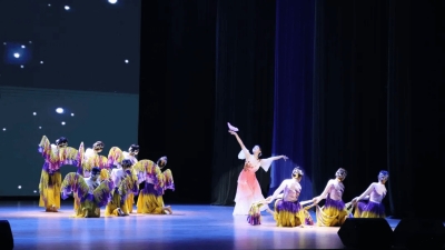 开幕式现场,教育学院学子们带来的民间舞蹈《十八焕蝶》惊艳亮相。伴随着悠扬的旋律。舞者们身着特色服饰,以灵动的身姿复刻出“群蝶齐舞”的唯美意境。抬手间似蝶翼轻颤,步伐间如蝶群穿林,将传统民间舞的婉约韵律与当代青年的青春活力完美融合。这支舞蹈既是学院民间舞教学成果的直观呈现,更藏着对“传统活化”的探索:编舞中既保留了民间艺术“形神兼备”的深厚底蕴,又融入现代舞台“光影联动”的表现手法,通过同学们精准的动作控制与默契的团队配合,生动诠释“焕蝶”象征的“蜕变成长”之意。