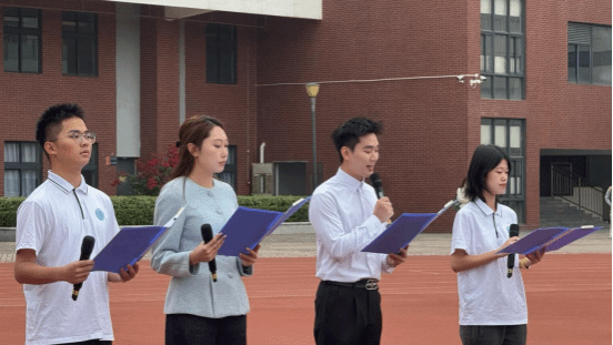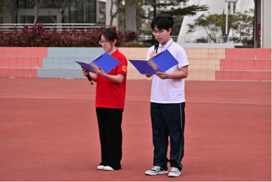“当晨曦点亮岭南的云层,国旗升起,映照青春的眼睛……”四名师生代表共同诵读《宪法之光,青春之誓》,老师与学生交替诵读,深情呼应,将对宪法的尊崇、对青春的承诺、对未来的期许融入每一句誓言。“我愿以青春之名起誓:尊崇宪法,铭记章程……”激昂的声音回荡在校园上空,将活动气氛推向高潮。这不仅是一场庄重的集体宣誓,更是一次深刻的精神洗礼,凝聚起师生共同学法护法、勇担时代使命的强大合力。