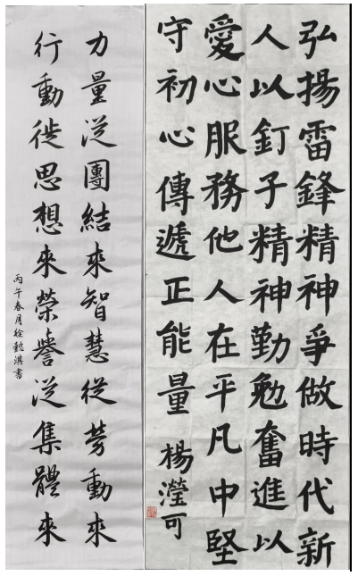 此次书法创作比赛,是教育学院推动“第二课堂”与思想政治教育深度融合的生动实践,也是学院深化文化育人、传承红色基因的具体举措。未来,教育学院将继续探索多元育人载体、丰富文化育人路径,持续推动红色精神与中华优秀传统文化进校园、进课堂、进心灵,让“奉献、友爱、互助、进步”的志愿精神如种子般在青年学子心中生根发芽、开花结果,让雷锋精神在新时代校园中薪火相传、生生不息,引导广大青年学子以榜样为力量,以青春之姿践行初心使命,书写新时代青年的责任与担当。(图文/教育学院 陈泽鑫)