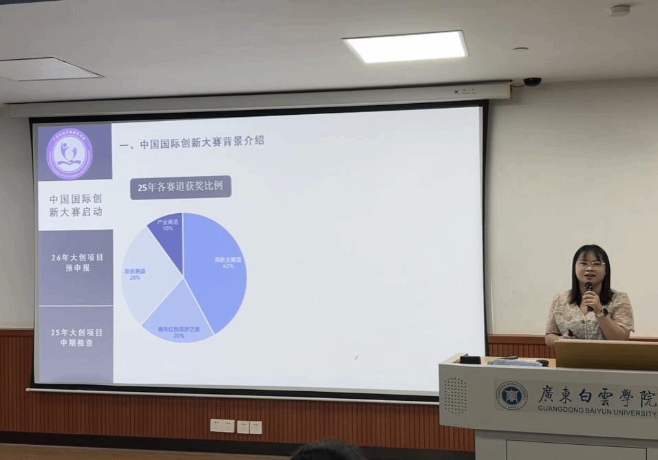 本次活动围绕中国国际大学生创新大赛启动、2026年大创项目预申报及2025年大创项目中期检查三大主题展开,为学院新一年度创新创业工作拉开了序幕。与会师生共同回顾了中国国际大学生创新大赛十年来的主题演变历程,从2015年首届“互联网+”成就梦想,到2020年至今“我敢闯,我会创”的能力本位导向,大赛经历了从技术工具驱动到精神品质塑造,再到学生主体能力提升的深刻转变。这一演变轨迹不仅反映了国家对创新创业教育认识的不断深化,也为学院参赛项目指明了方向——既要扎根中国大地体现价值,又要具备国际视野,在“更中国、更国际、更教育、更创新、更协同、更全面”六个维度上寻求突破。