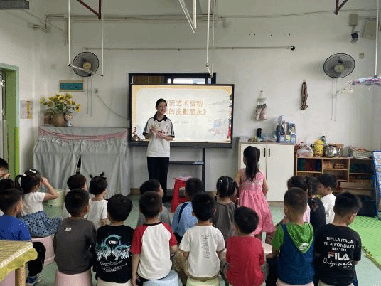 活动现场,团队结合前期陆丰调研成果与中班幼儿身心发展规律,走进幼儿园中班班级,开展以“陆丰皮影·童趣传承”为主题的沉浸式教学实践。教学伊始,师生们用生动直白的语言、趣味十足的互动,向中班孩子们简单介绍陆丰皮影戏的基本情况,结合提前准备的色彩鲜艳的皮影实物,让孩子们直观认识皮影、了解皮影的基本特点,快速拉近孩子们与这一世界级非遗的距离,激发孩子们的参与兴趣。
