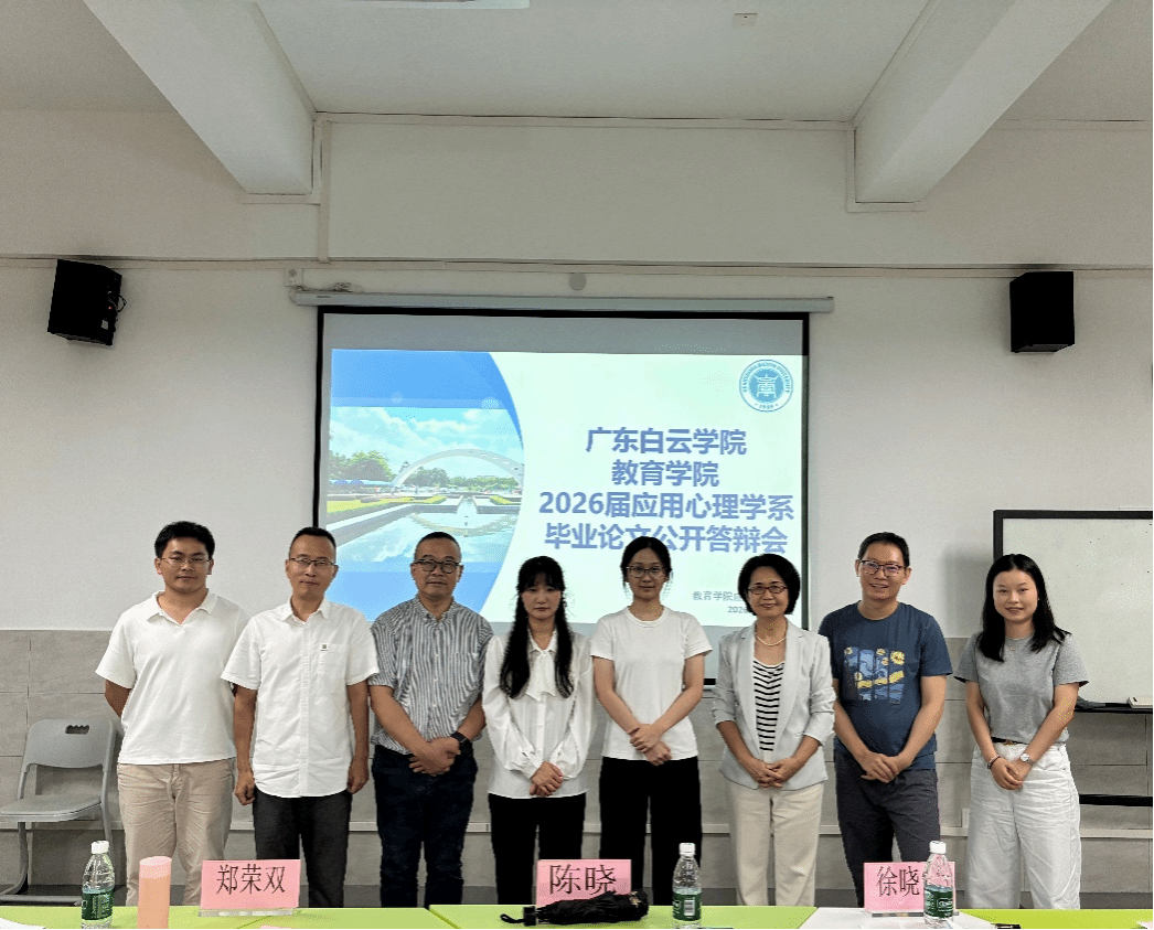本次公开答辩特别邀请了岭南师范学院心理学教授、星智成长高级课程研发顾问郑荣双教授,以及广州医科大学卫生管理学院医学心理学教研室主任陈盛强教授作为企业/行业专家参与评审。两位专家的到来,为答辩注入了鲜活的行业视角与实践经验,体现了应用心理学系紧密对接社会需求、强化校企协同育人的人才培养理念。同时,参与本次答辩的校内人员有:广东白云学院教学质量监测与评估中心专职督导李念良教授,教育学院副院长彭雨明,应用心理学专业主任徐晓宁博士,陈晓教授,教育学院实验室主任夏静静老师。陈晓教授担任本次公开答辩组组长,卢俊铭老师担任答辩秘书。